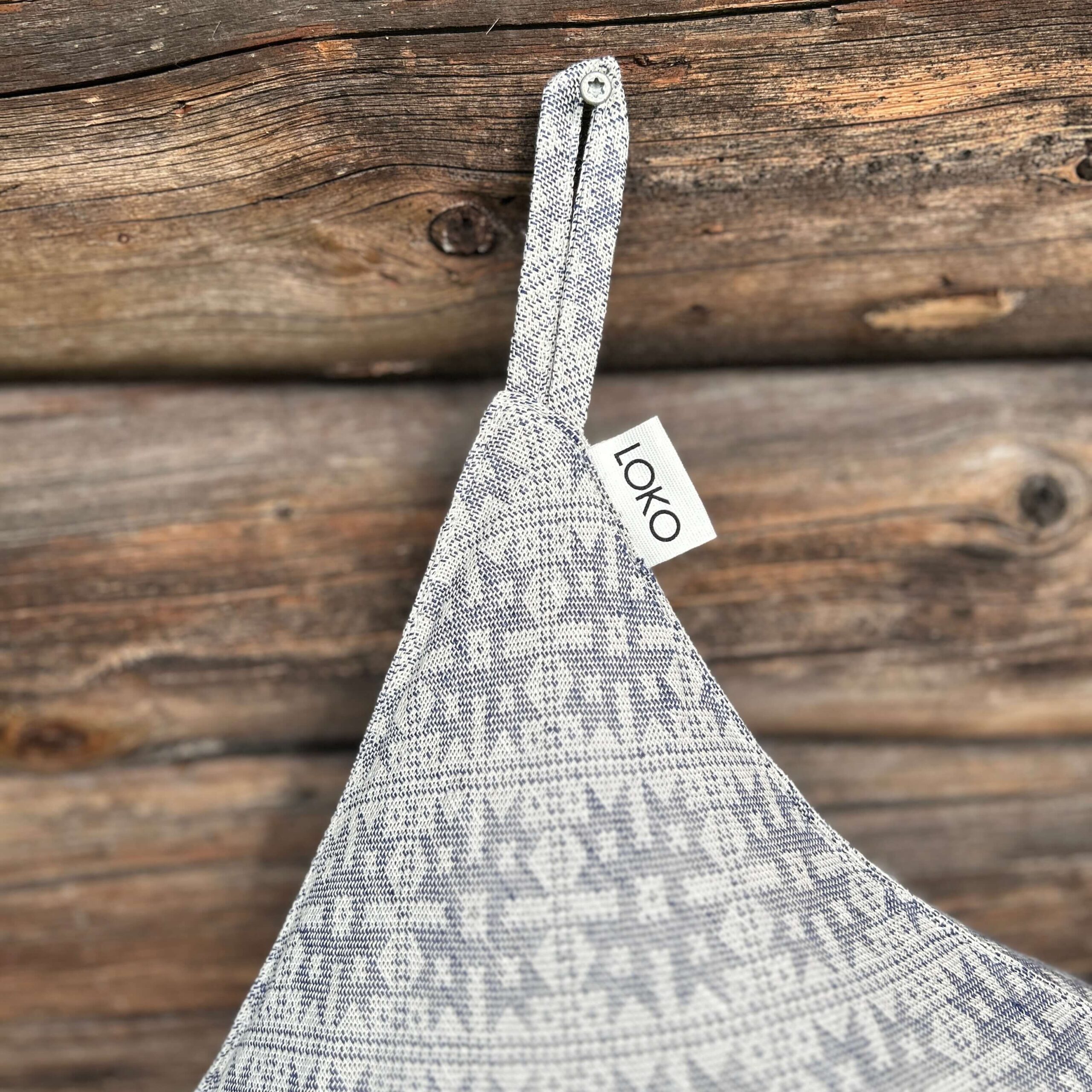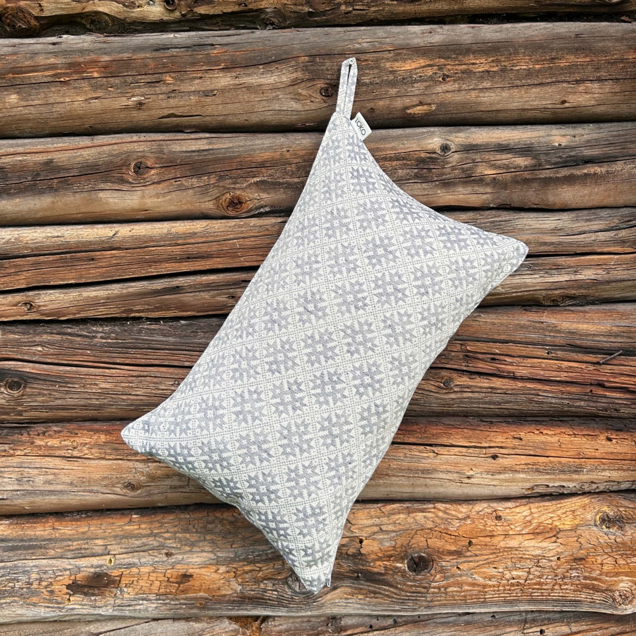 Saunamõnusid on eriti tore nautida koos saunapadjaga, mis toetab selga ja mida saab pikutamisel pea alla võtta. Seda ilusat saunapatja kaunistab Pärnumaa kindakirja muster.