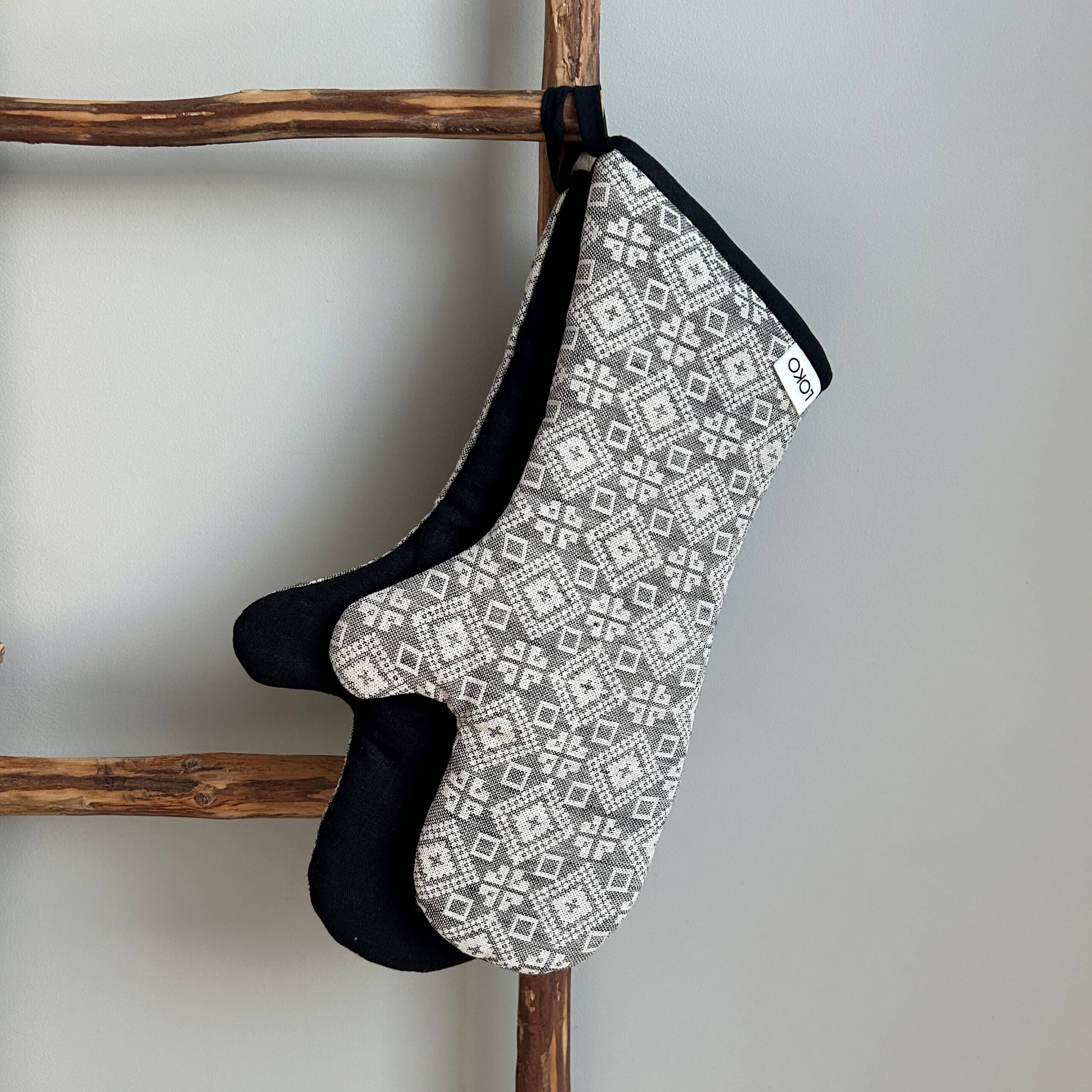 Tartumaa kindakirja mustriga pajakindad, mis on mõnusalt pika käisega ja kaitsevad sind kuuma eest. Tagumine pool on valmistatud ühevärvilisest linasest kangast.