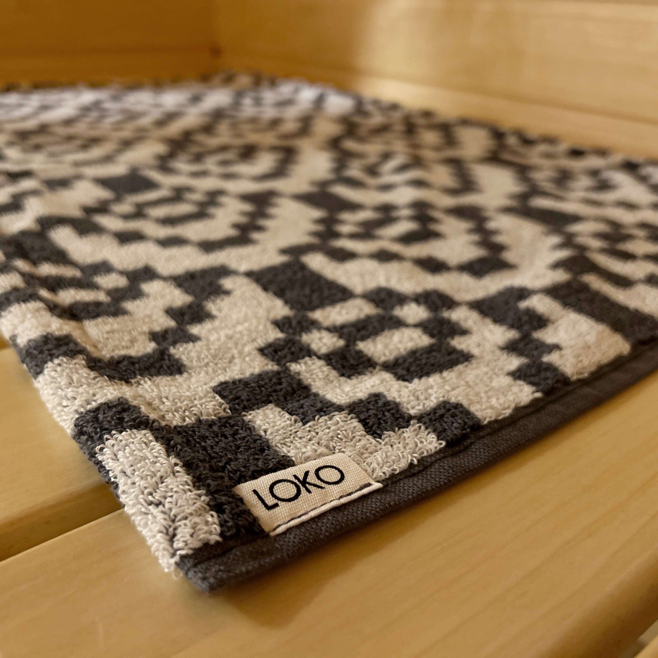 Saunalava istumisalus kaitseb lavalaudu määrdumise eest ja sind selle eest, et kuum ei kõrvetaks. Kangast kaunistab Valgamaa, Otepää kindakirja muster.